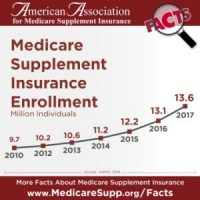The number of Americans with Medicare Supplement insurance continues to increase with 13.6 million having this form of coverage in 2017 according to the American Association for Medicare Supplement Insurance.